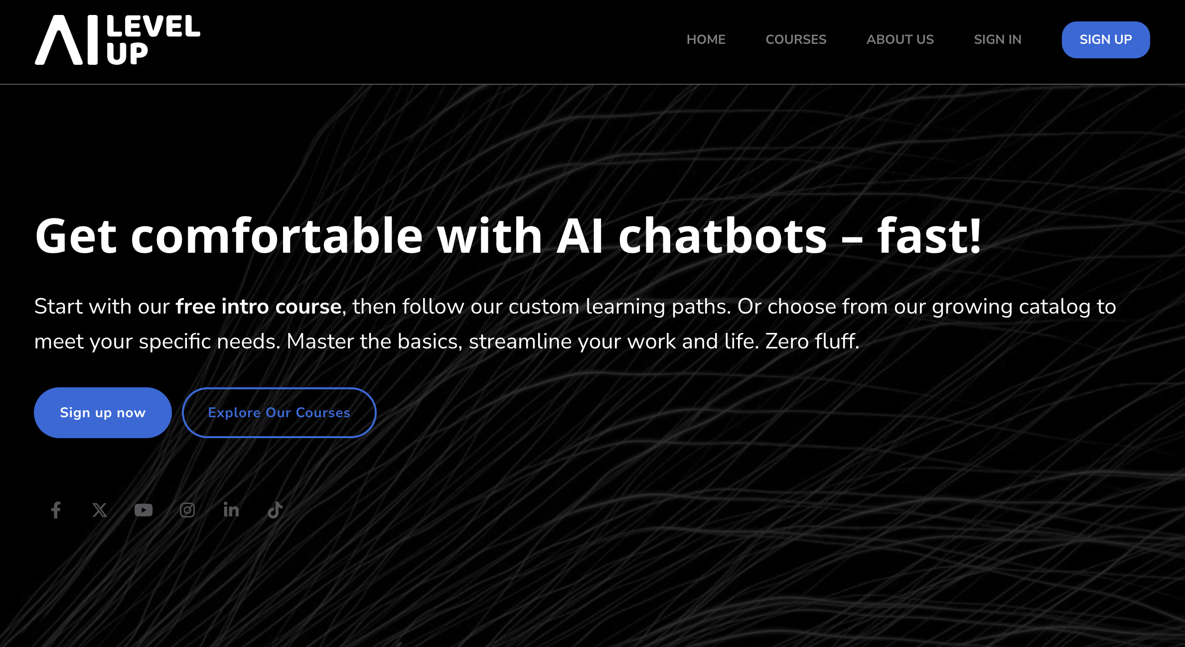 AI Level Up is our hands-on training platform designed to build fluency and confidence with modern AI tools.